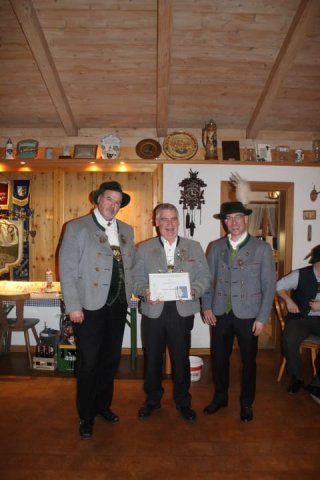 Alle Anwesenden applaudierten dem Geehrten und der Verein stimmte zu Hermanns Ehren den Vereinsspruch „Gsund sama und a Schneid hama …“ an. Der Geehrte, sichtlich erfreut, bedankte sich für die große Ehre.