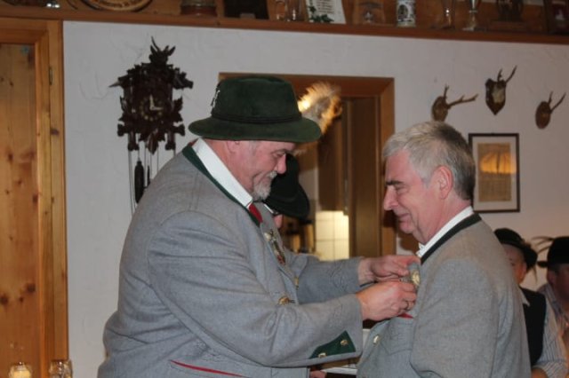 Alle Anwesenden applaudierten dem Geehrten und der Verein stimmte zu Hermanns Ehren den Vereinsspruch „Gsund sama und a Schneid hama …“ an. Der Geehrte, sichtlich erfreut, bedankte sich für die große Ehre.